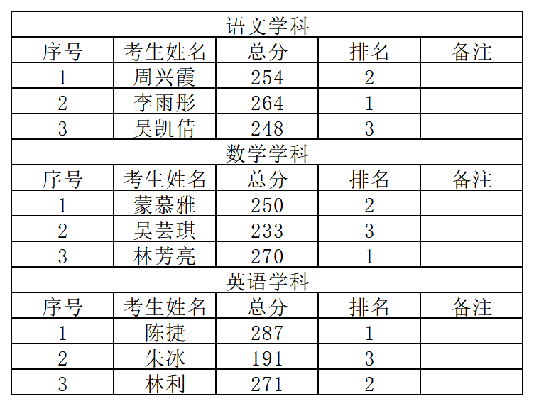 附件:各学科面试成绩